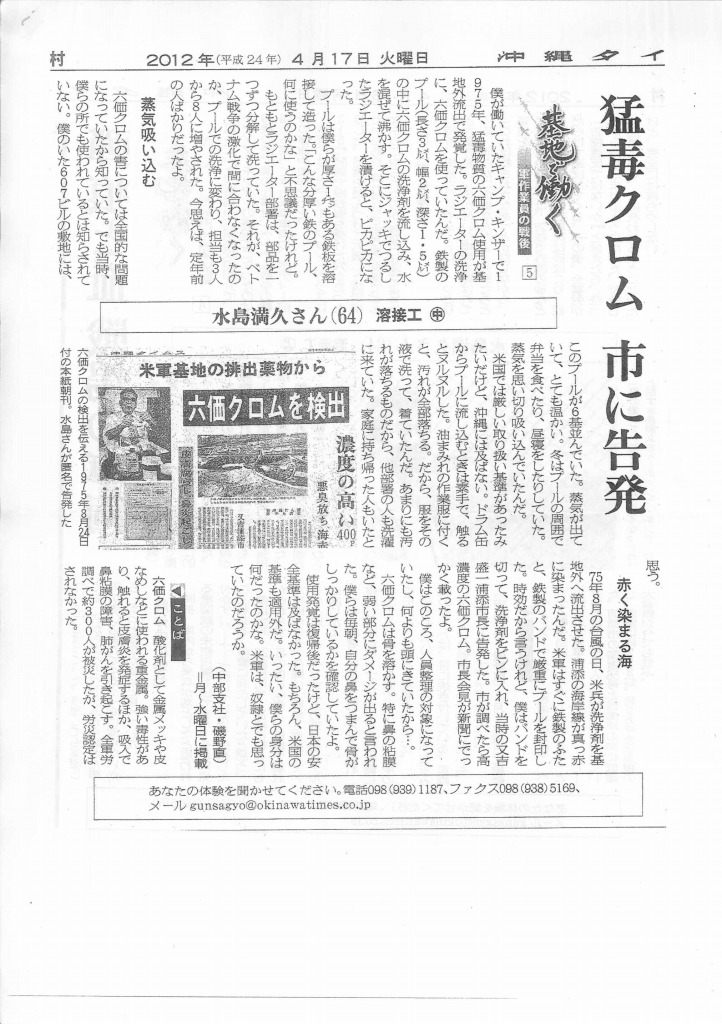 沖縄タイムスのコピーです。沖縄闘争の前に載せるべきでしたが、重要だと思うので、遅ればせながら載せます。