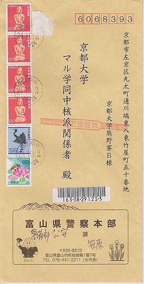 4年前やった熊野寮へのガサで押収したものを返すから、富山まで片道200km自腹で取りに来い、ということですな。