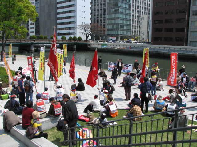 泉佐野市議・国賀祥司さんが関西生コン、三里塚と連続的にかけられた弾圧を粉砕する訴えを行い、これを打ち破る力は現場労働者の怒りの決起を組織しぬくことだと、公務員労働運動解体攻撃粉砕の決戦突入を宣言した。教育労働者も、大阪府知事・橋下の日の丸・君が代強制条例粉砕へ決戦アピールを行った。さらに、部落解放同盟全国連西郡支部の1000人建設をともに闘い、民営化を阻止する決意を八尾北医療センター労組が行った。婦民全国協、労組交流センター、京大熊野寮反原発会議、全学連など多くの仲間が熱烈な決意を表明した。