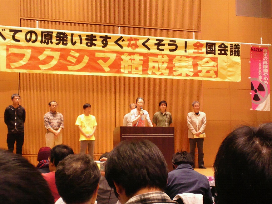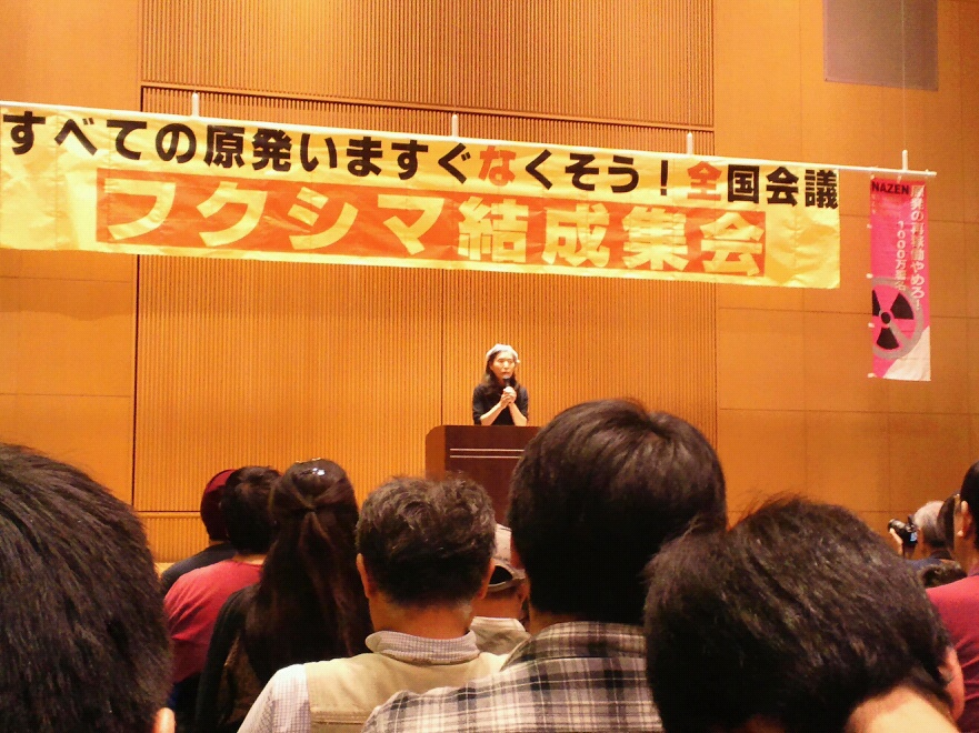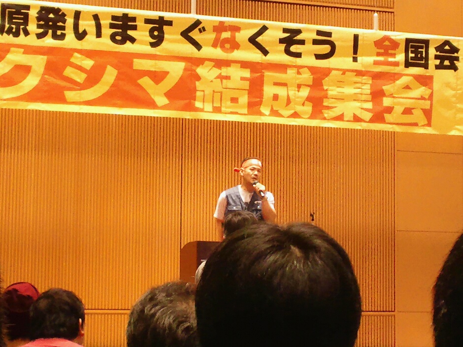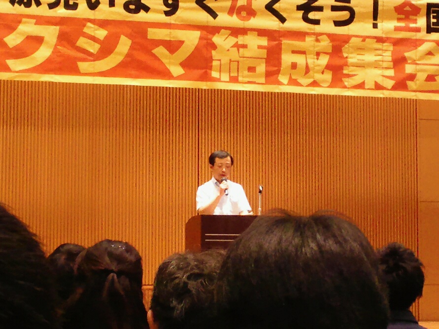 「全国からここ福島に集まっていただき感無量です。誰がこの事態に責任を取るのか!想定外などという言い訳は絶対に許せない!一番言いたいことは、子供たちの未来を守ること。ここに力点をおいて全国で頑張っていただきたい。」