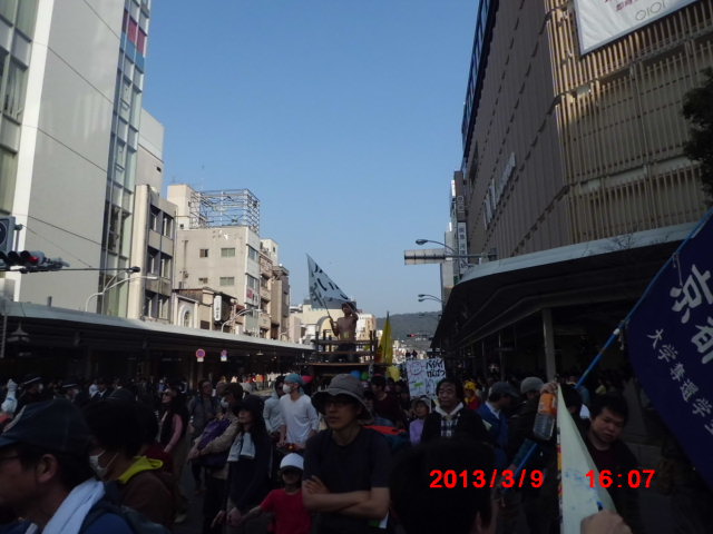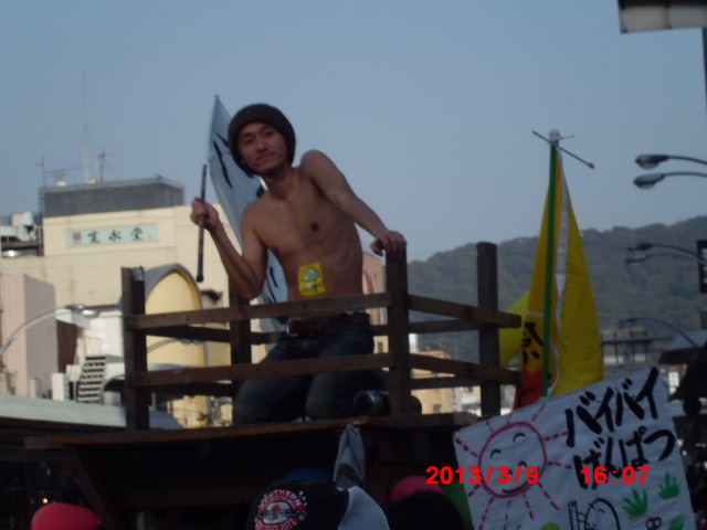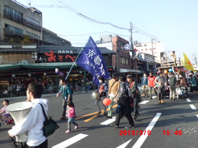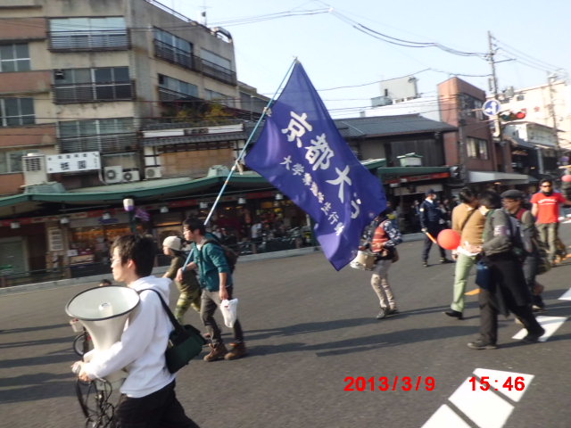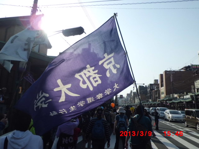 中には、3・11福島集会の時に、「福島市内のデモで京大旗を見て、