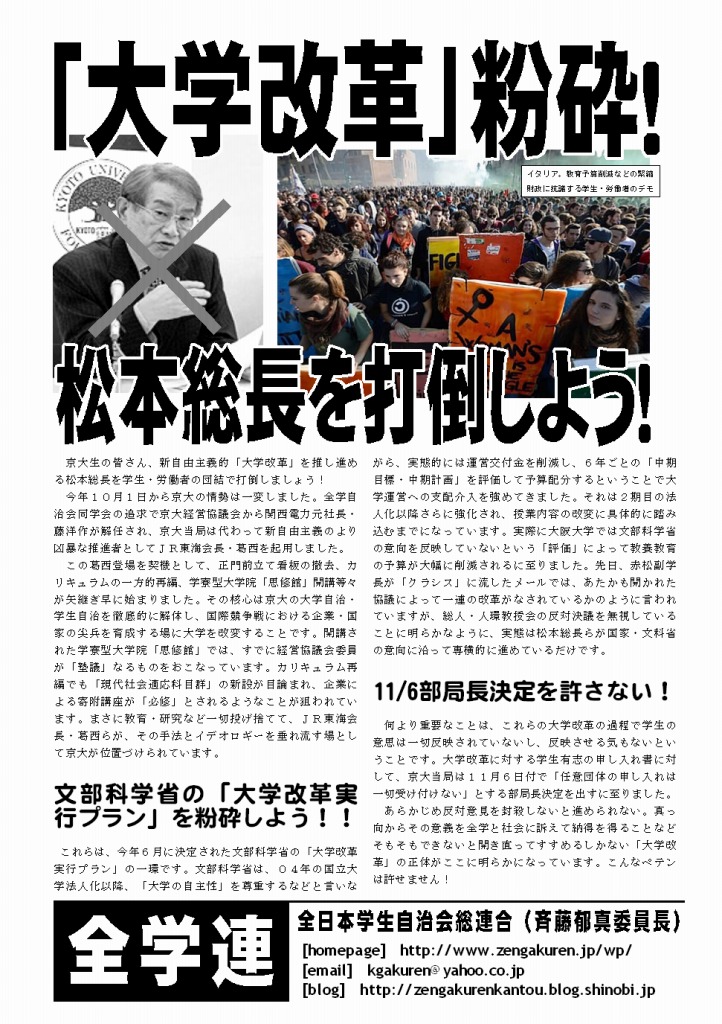 参加希望の方は、お近くの全学連に声をかけてください☆