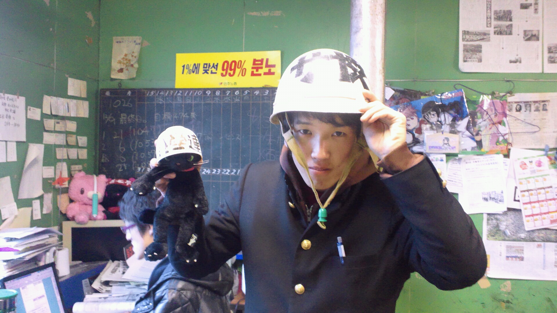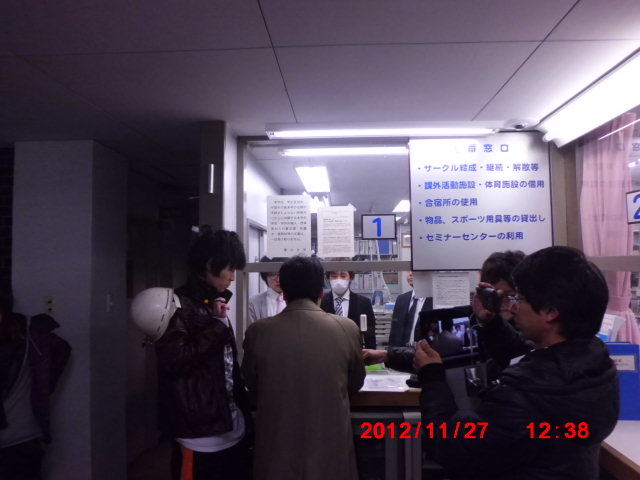 寮祭企画で総長室突入をしました!本日19時から学務部2階会議室で赤松副学長と団交です!総長を引きずりだそう!