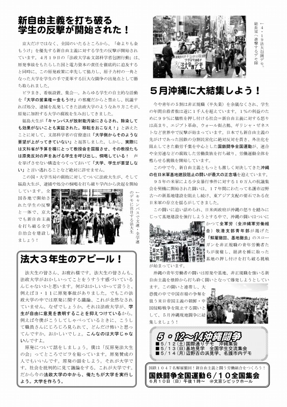 原発再稼動阻止に向けて、職場・キャンパス・地域から、これからも声をあげ続けてゆきましょう!