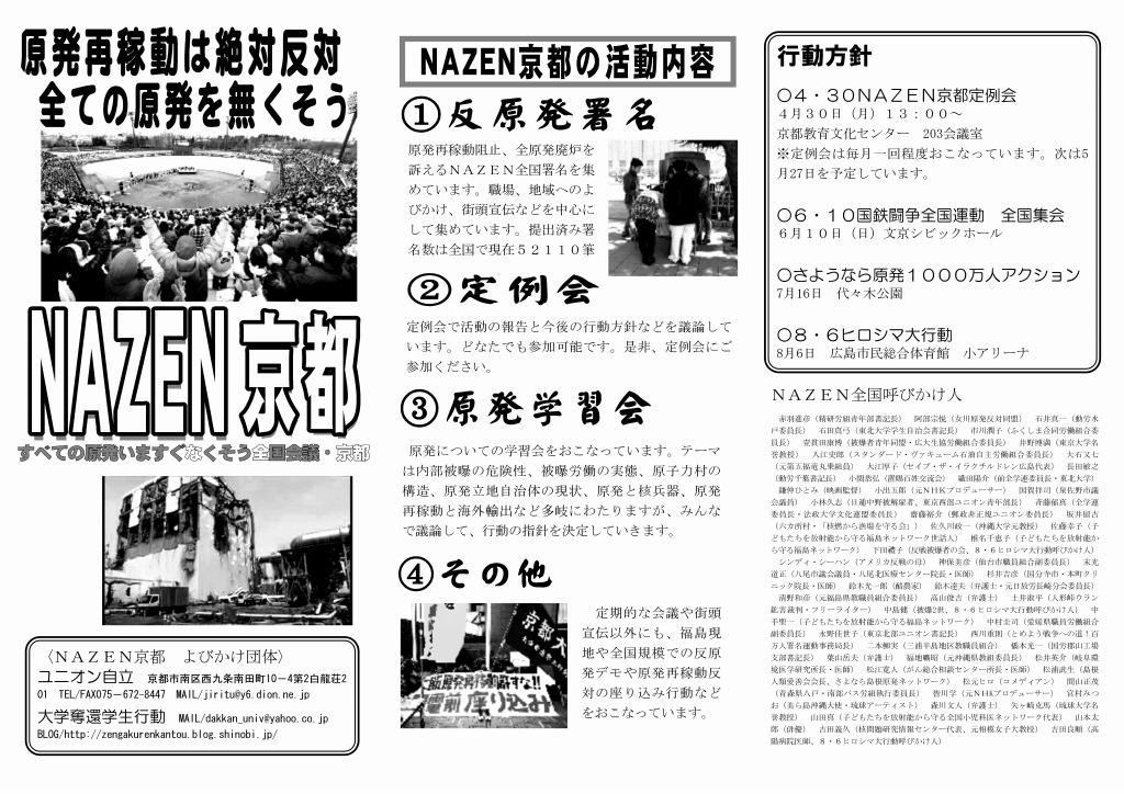 地域から声をあげるべく、NAZEN京都をこれから発展させてゆきたいと思います。