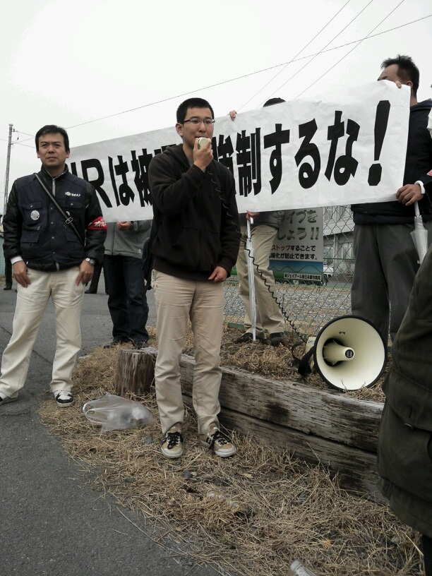 3月23日朝、福島県いわき市のいわき機関区で門前抗議行動に立ちます。