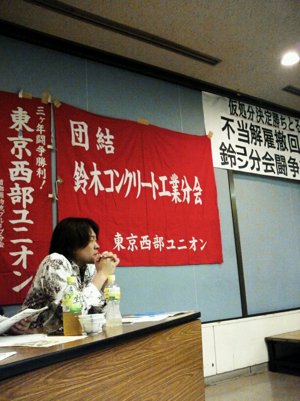夜は東京西部ユニオン・鈴木コンクリート工業分会の支援共闘会議結成集会へ。