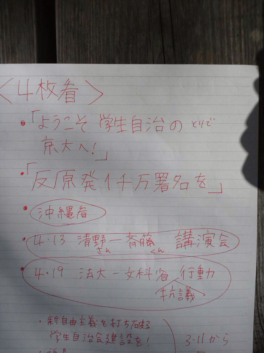 写真左は辻川慎一副委員長。去年の京大11月祭の講演会でお招きした人です。