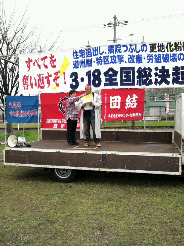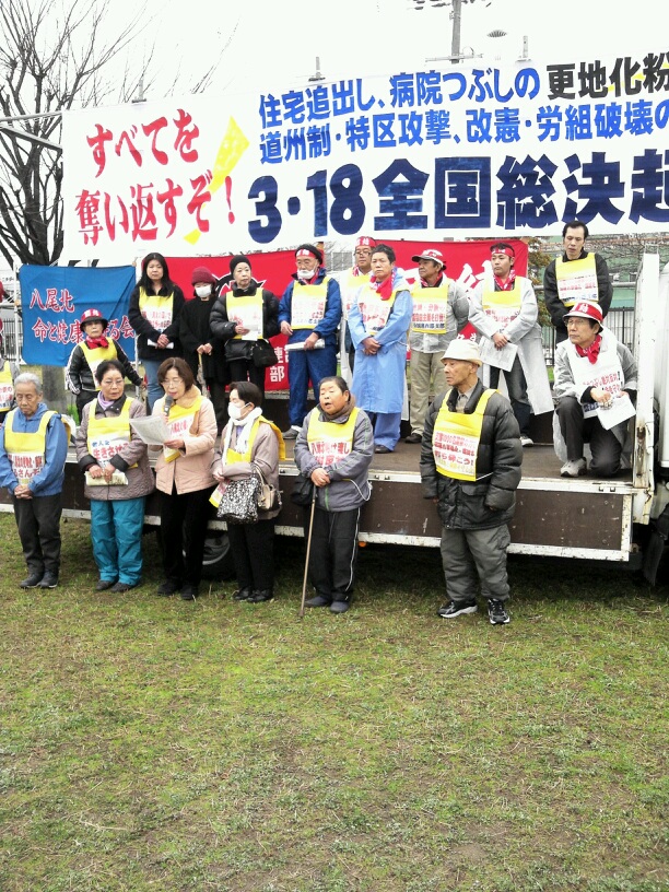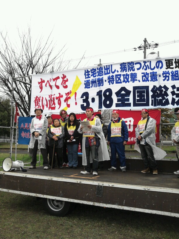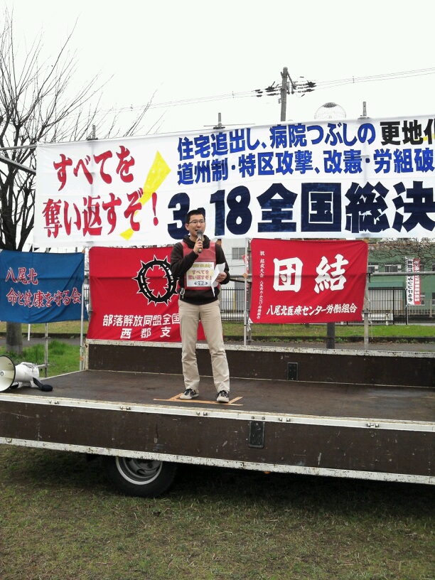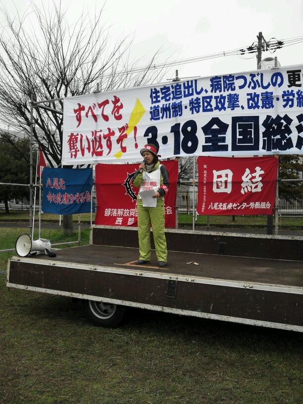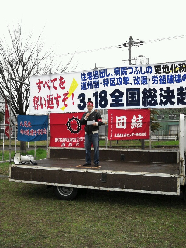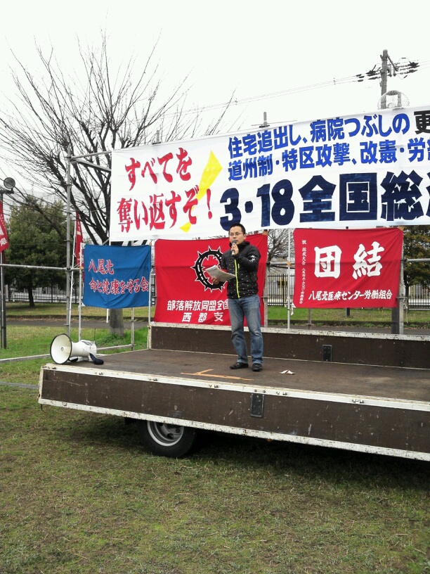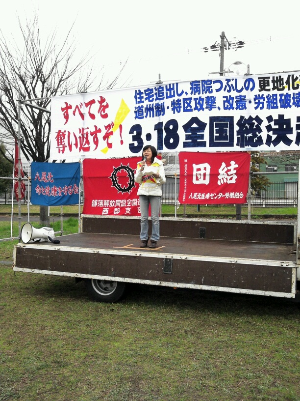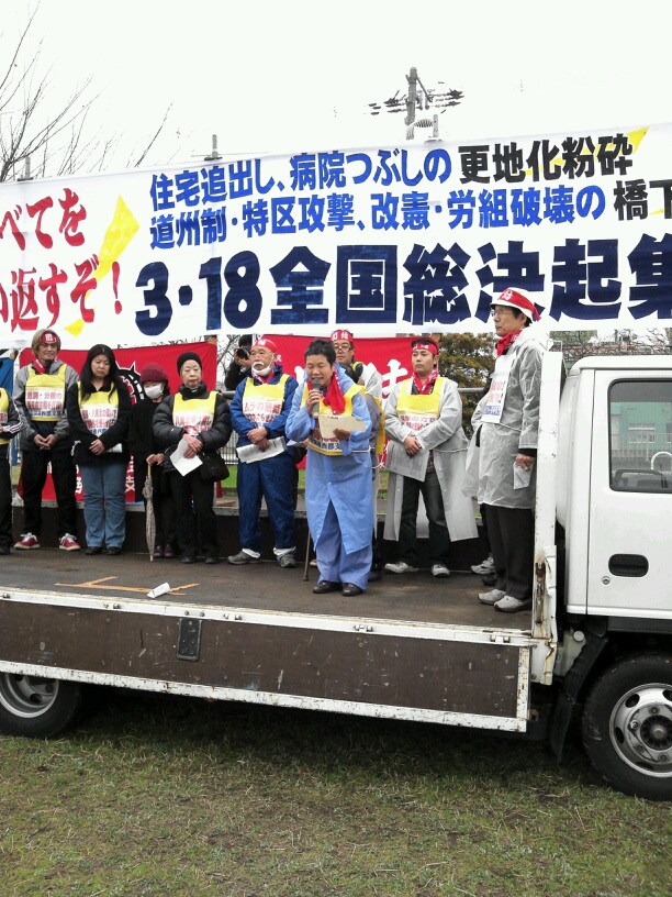 今、大阪市の橋下市長が進める道州制も、労組破壊も、被災地での復興特区も原発も全て同じです。資本主義の危機の中で行政も資本も一体化して全矛盾を私たちに押し付けようとしています。