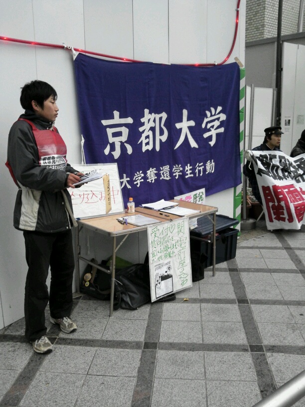 京都大学を中心に、京都・関西全域の大学で学生自治を甦らせ、大学の中から反原発の行動をつくっていく闘いと一体での座り込みです。