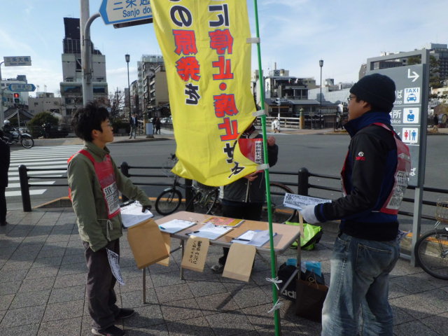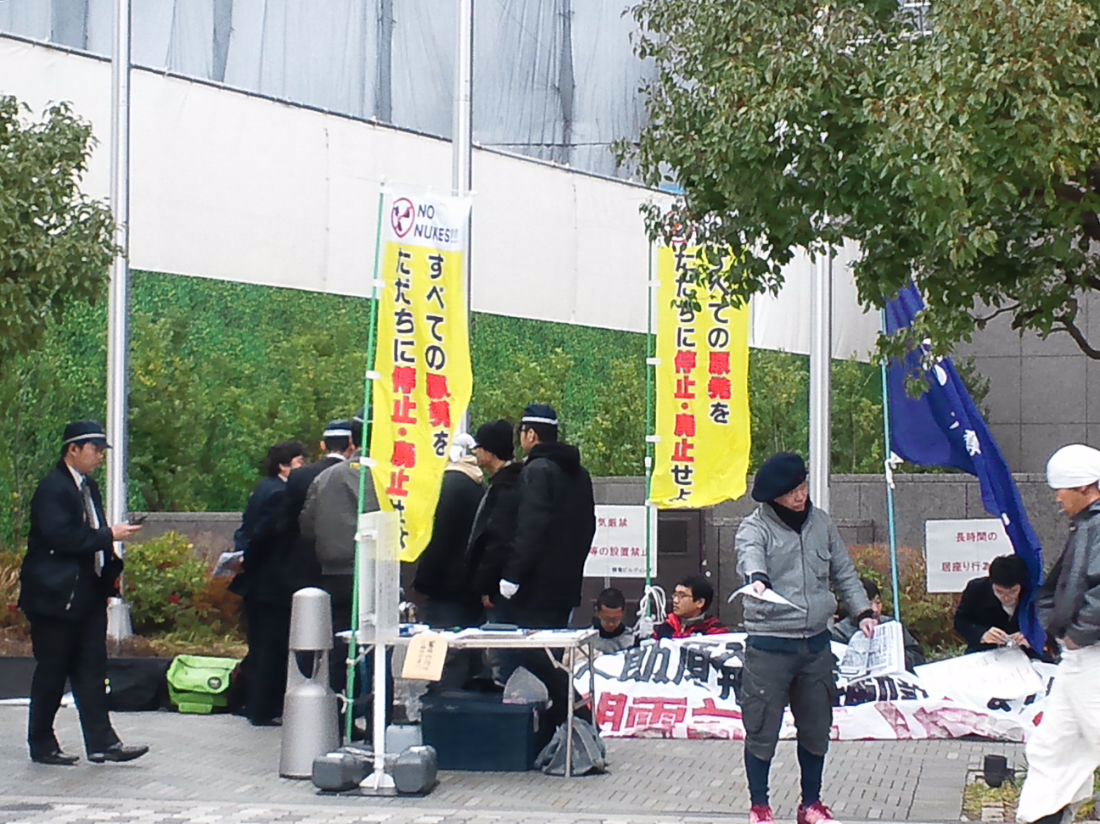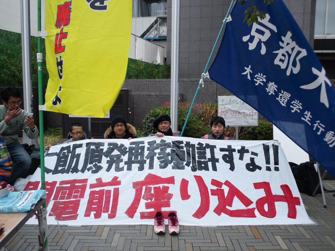 1月20日に関西電力本店に申し入れ行動をおこないます。そして、高浜原発が停止(関電管内全原発停止)する2月20日までの一ヶ月間、関電京都支店前での座り込み行動を開始します。この座り込み行動へのみなさんの参加を呼び掛けます。原発再稼動阻止へ、ともに立ち上がり(座り込み)ましょう!!