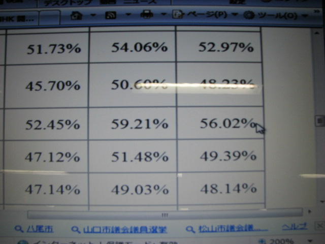 ほとんどの投票所で40%代後半から50%代前半でしたが、