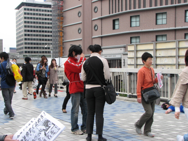 その場で一緒にビラを撒いて