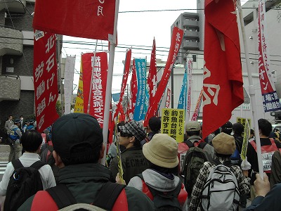 集会の勢いをそのままに、いよいよデモへ出発。