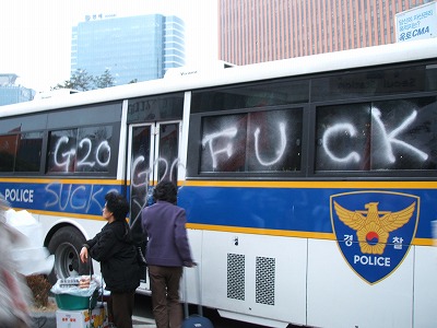 というわけで、関西全学連からも韓国G20粉砕行動に決起してきました。