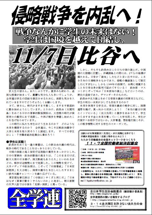 方針提起! 全ての学生は11・7へ!