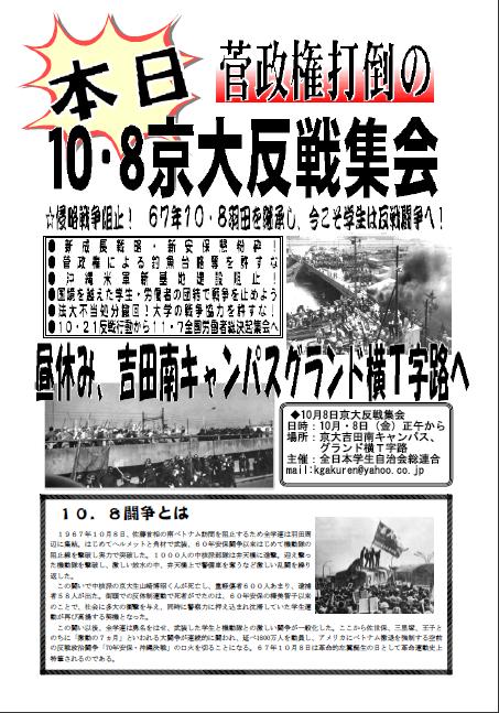 10・8、京大から学生の反戦闘争の巨大なうねりを巻き起こそう!