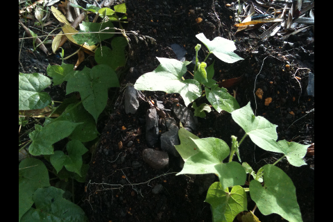 なんと、土ごとひっくり返されながらも、朝顔と夕顔は自力で身を起こし、新たにつるを伸ばし始めていました!