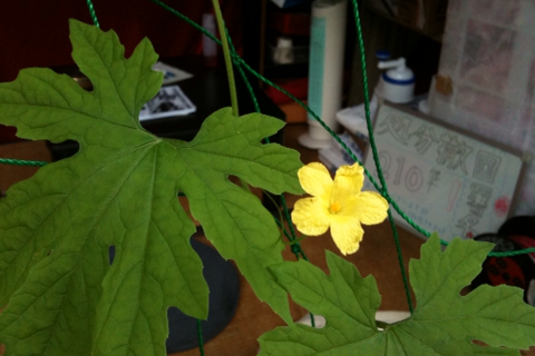 ゴーヤもうれしくて花を咲かせています。