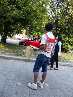 鳩山が沖縄に乗り込む中で行われた街宣は、開始から次々と基地撤去の署名が集まります。